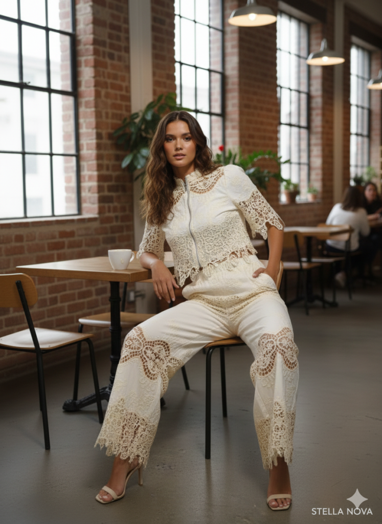 BLUE PAPPER CONJUNTO BEIGE CON BLANCO